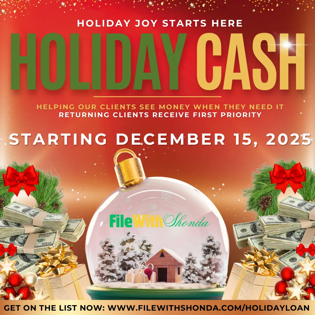 Enter for your chance to be picked for our Holiday Cash Loan program. Entries are being accepted NOW.