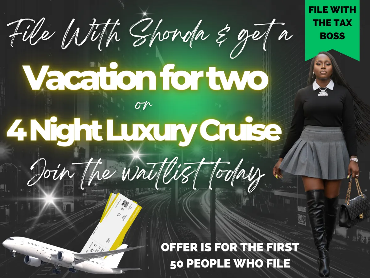 First 50 people who File with Shonda this upcoming season will receive a vacation for two